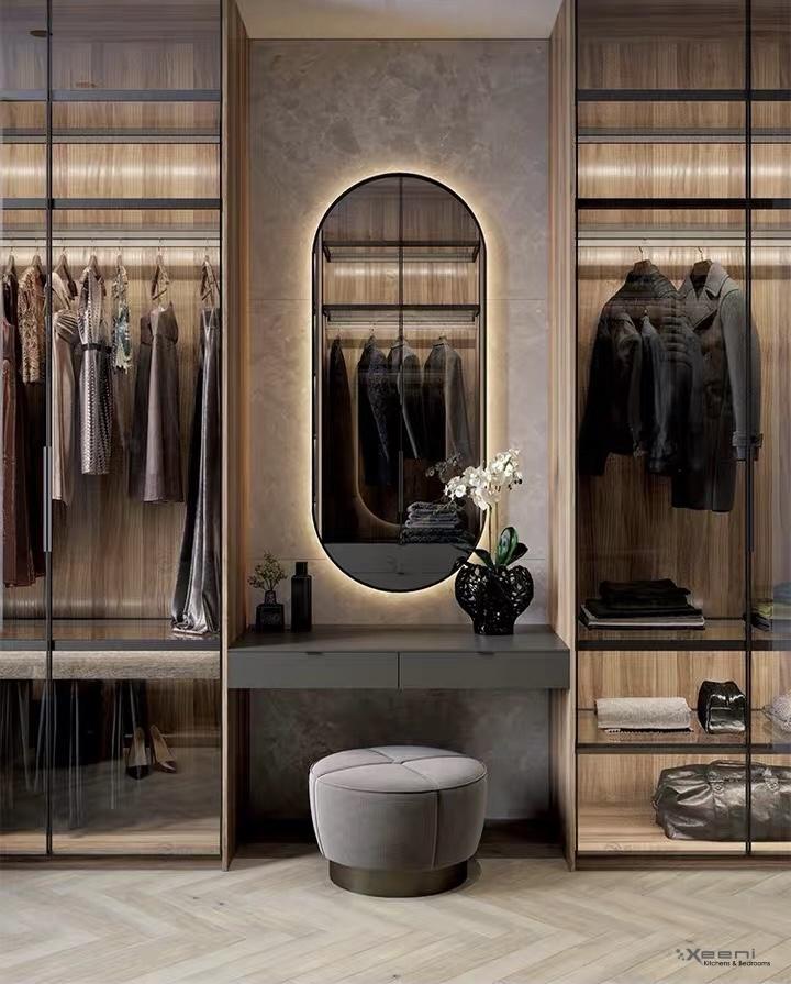 For a timeless elegance, matte finishes offer a refined, sophisticated touch, absorbing light and exuding a soft, luxurious aura. Wood grains, whether rich and dark or light and airy, add warmth and texture, inviting nature into the urban abode. And let's not forget the bespoke handles and knobs, from minimalist to ornate, that serve as the perfect finishing touch, transforming the wardrobe into a piece that's uniquely yours.